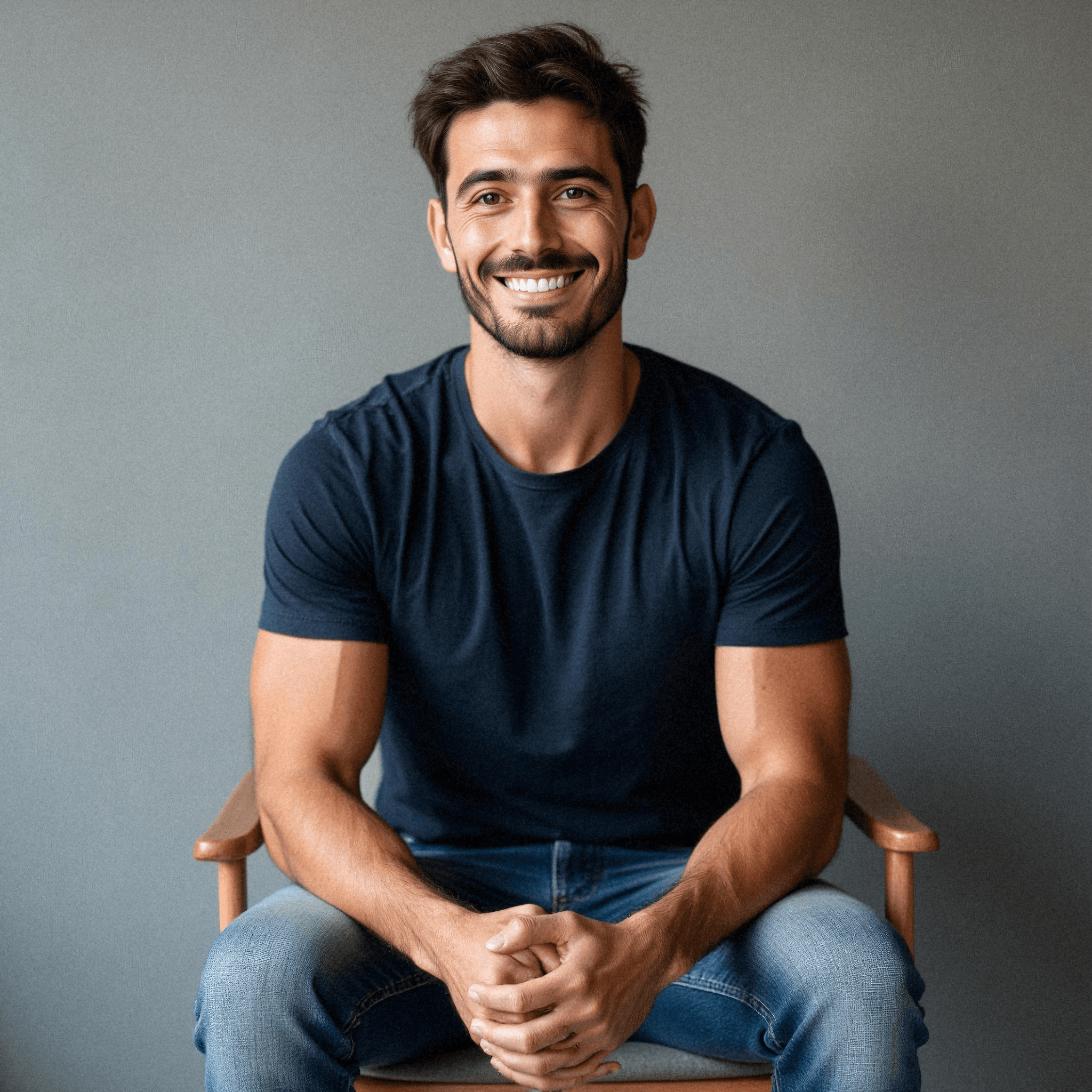Casual man seated with light backdrop