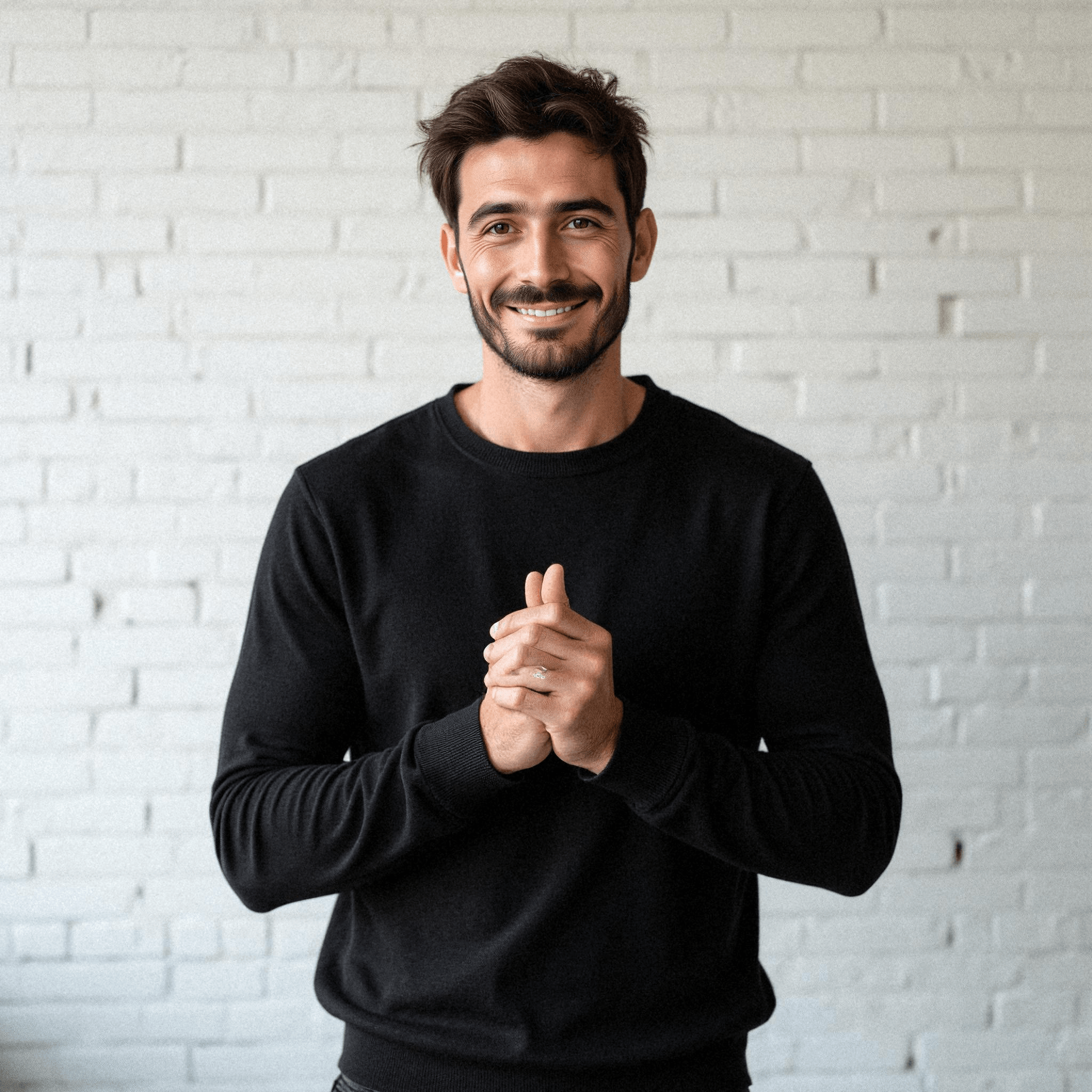 Man in Black Sweater Smiling Casually